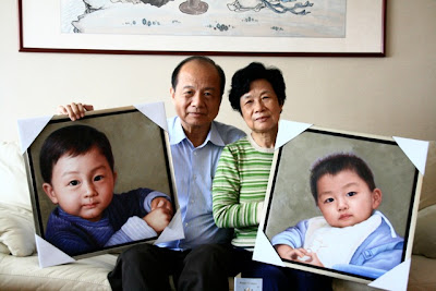 Dad and Mum open Dad's birthday present from me – oil portraits of my nephews.