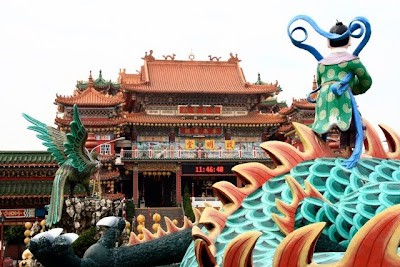 Another giant dragon fronts Qiming Temple 啟明堂, carrying various mythical creatures and gods.