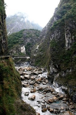 Swallow Grotto Trail 燕子口步道 follows the Liwu River. The distance between the gorge walls is so narrow that they almost seem to touch each other.